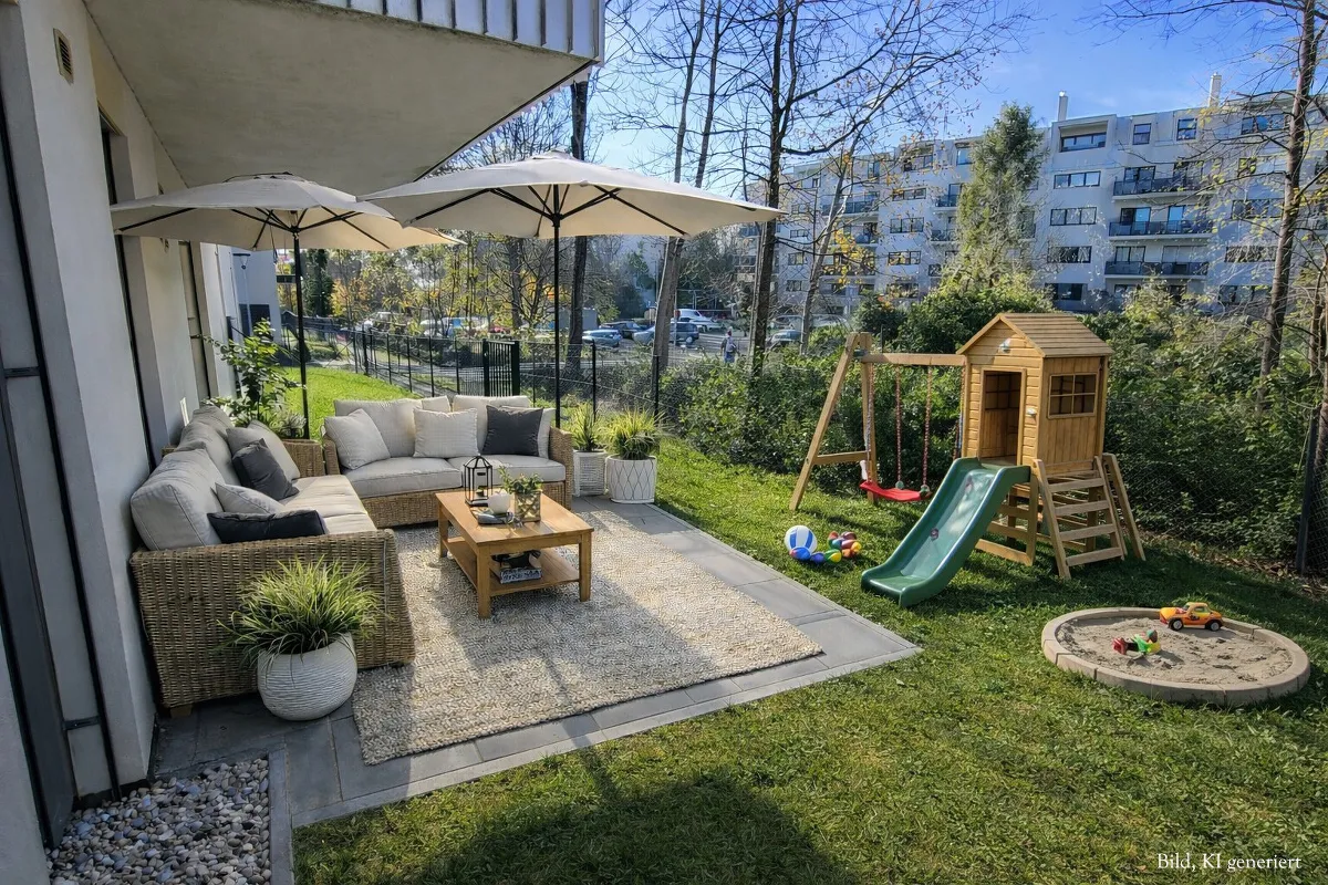 - Balkon oder Terrasse + Garten