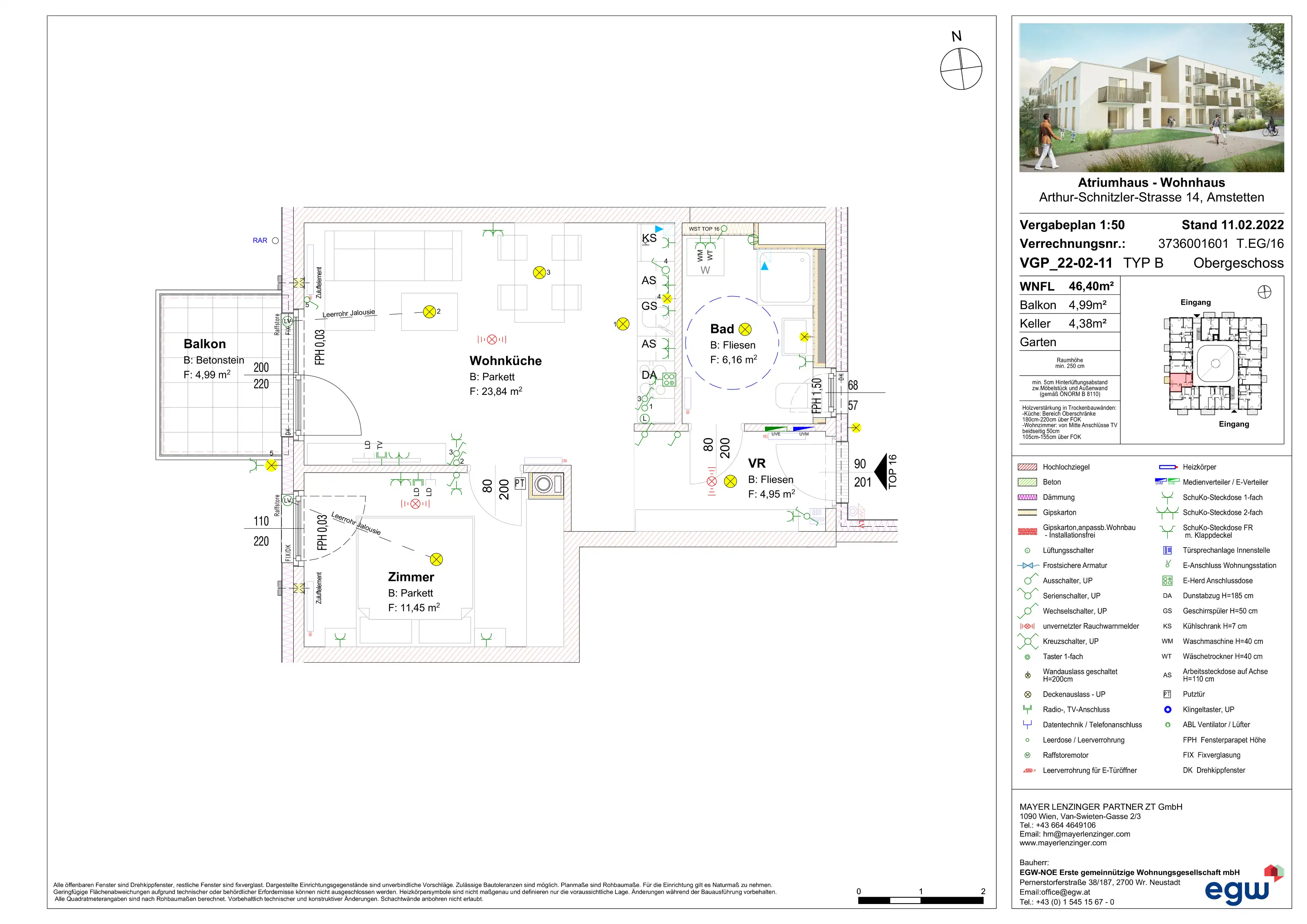 Energieausweis: HWB: 40,50 kWh/m²a (Energieklasse b) – fGEE: 0,85 (Energieklasse aa) – Gültig bis: 27.07.2032