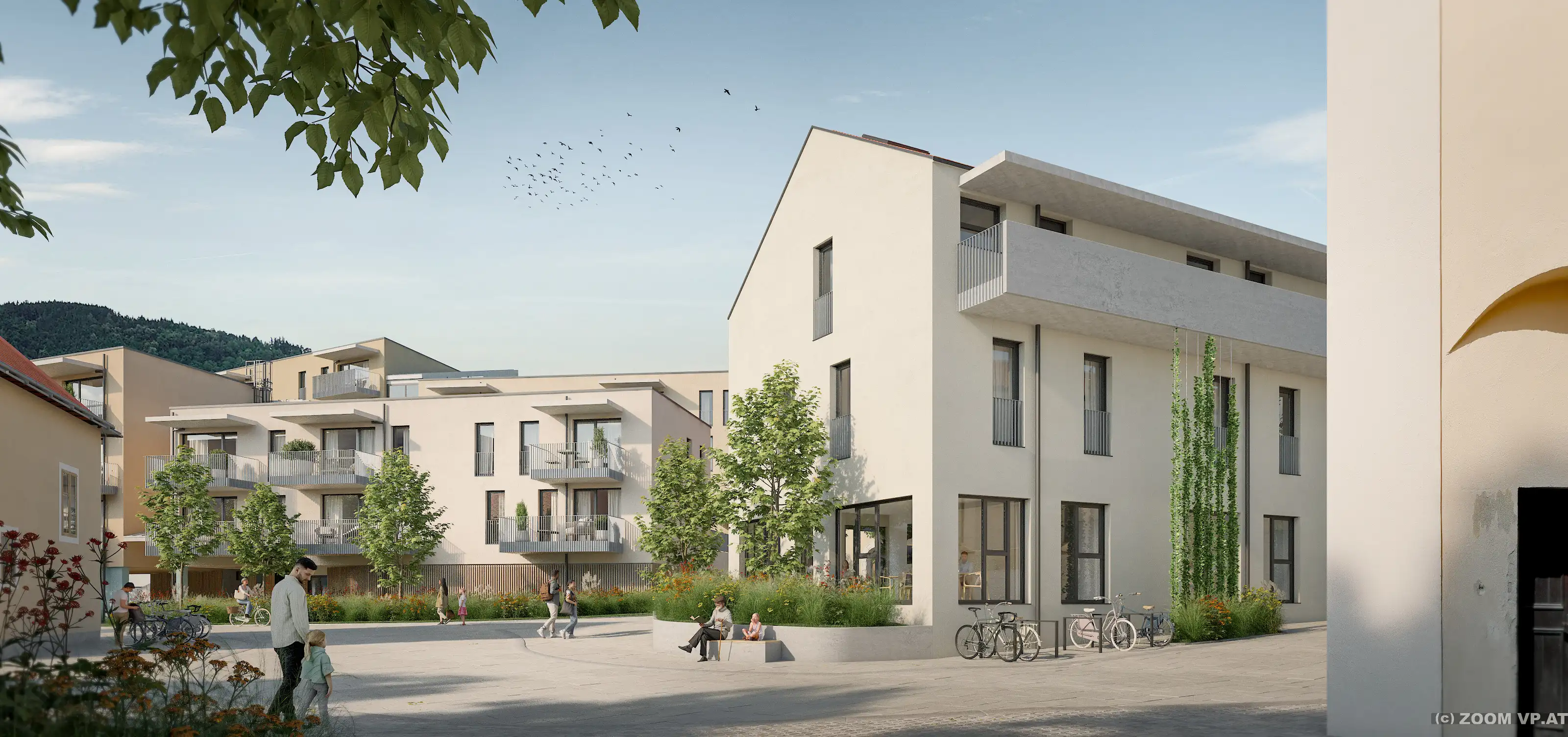 Die EGW errichtet in diesem Rahmen fünf Gebäude mit 42 geförderten Wohnungen, davon 16 Wohnungen im Programm „Junges Wohnen“, sowie drei Geschäftslokale und eine gemeinsame Tiefgarage. Begrünte Freiräume zwischen den Gebäuden sowie eine energieeffiziente Bauweise sorgen für hohen Wohnkomfort und attraktive Aufenthaltsbereiche.