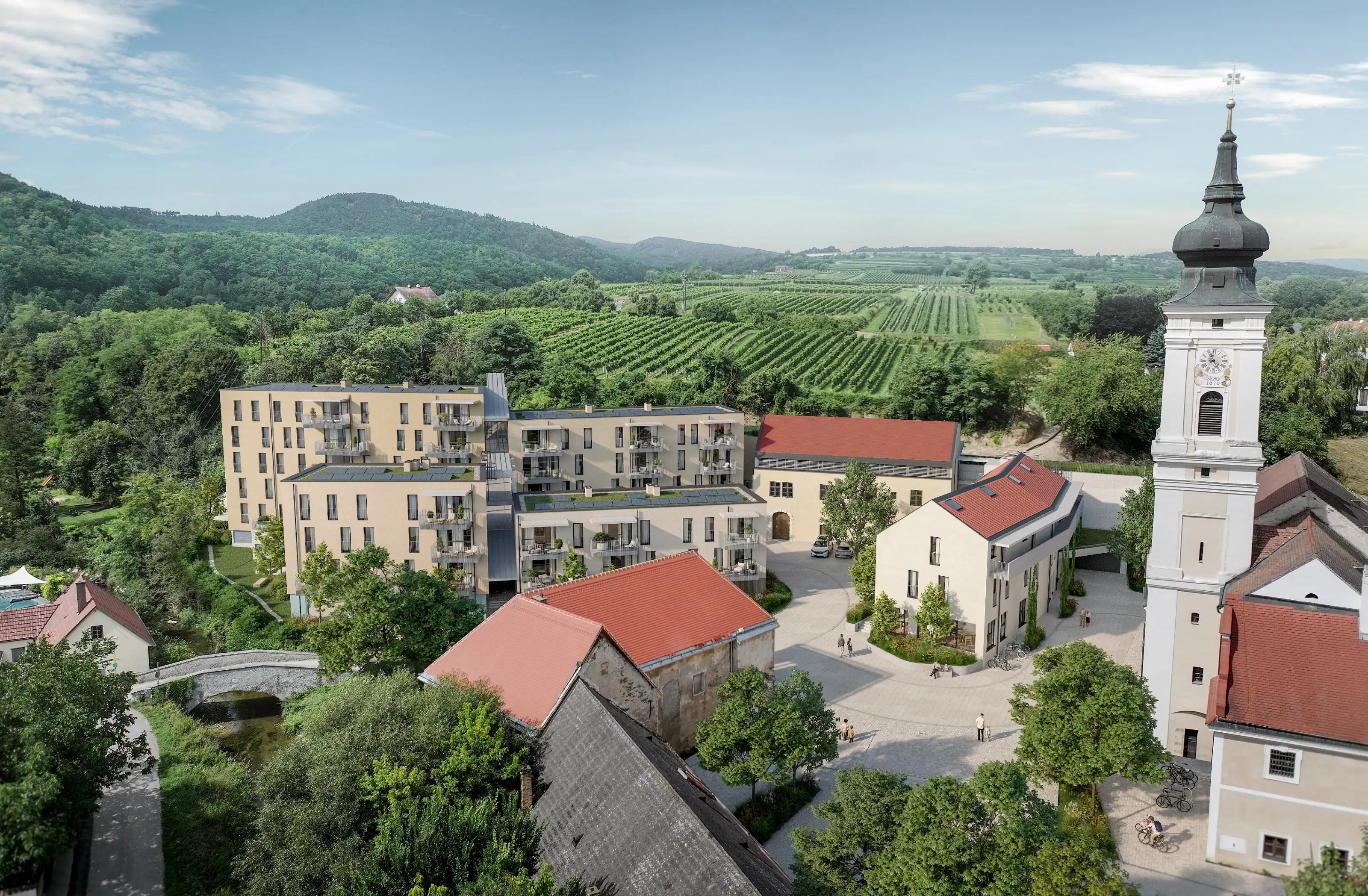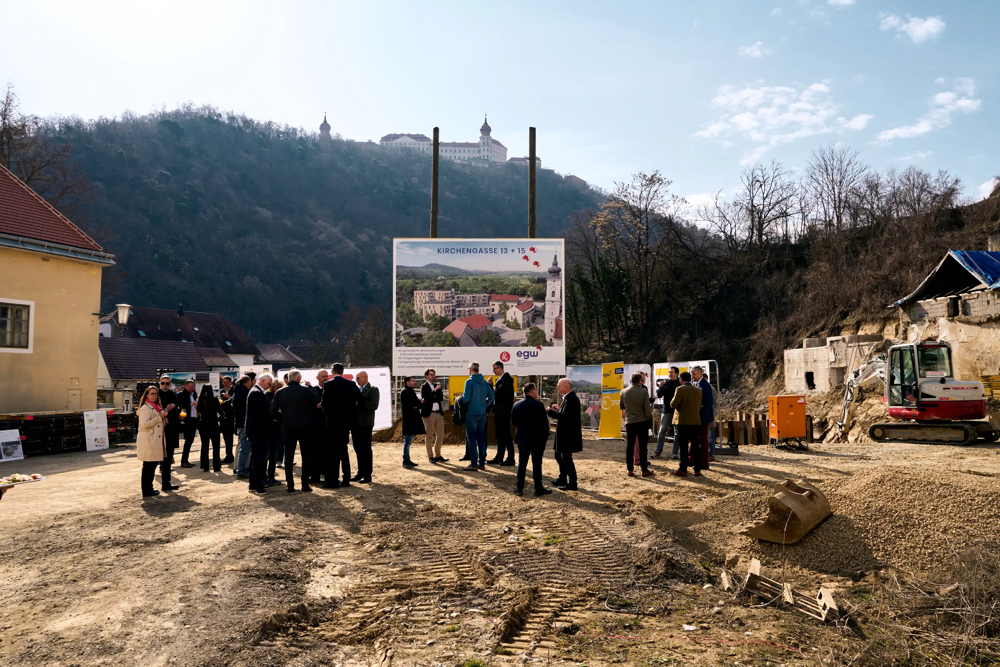 Mit dem feierlichen Spatenstich fiel der Startschuss für ein neues Wohn- und Ortsentwicklungsprojekt im Zentrum von Furth bei Göttweig. Mit Blick auf das Stift Göttweig entsteht im Zuge der Neugestaltung des Dorfplatzes ein lebendiges neues Zentrum mit Gastronomieangeboten und einem Schulstandort.